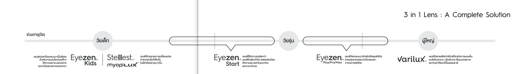 รุ่น Eyezen คือเลนส์คลายการเพ่ง เหมาะสำหรับลูกค้าที่มีลักษณะการใช้งานอยู่หน้าจอเป็นระยะเวลานานตลอดทั้งวัน
