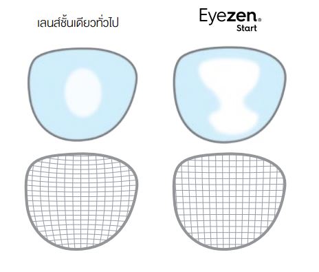 รุ่น EyezenStart คือรุ่นที่มี 2 จุดCenter จึงทำให้ลดภาพบิดเบือนบนเลนส์ได้ดีมากยิ่งขึ้น เหมาะเป็นรุ่นอัพเกรดจากเลนส์ชั้นเดียว