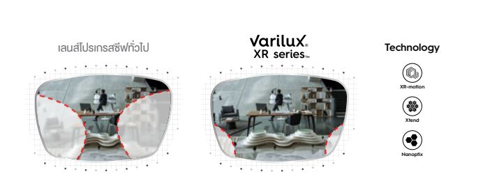 รุ่น XR Series เหมาะสำหรับคนที่ติดปัญหาเรื่องใช้เลนส์โปรเกรสซีฟแล้ว ระยะกลางรู้สึกแคบและไม่ชัด จึงมีการพัฒนาส่วนนี้เพื่อตอบโจทย์ลูกค้า และเหมาะกับคนค่าสายตามากๆ เอียงเยอะๆ ค่าสายตาซับซ้อนมาก และมีทุกเทคโนโลยีในรุ่นก่อนหน้าทั้งหมด
