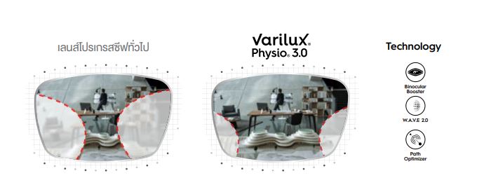 มาพร้อมเทคโนโลยี Digital Focus Booster ช่วยทำให้ขอบเขตการมองเห็นภาพกว้างขึ้นถึง 30% เมื่อเทียบกับเลนส์โปรเกรสซีฟทั่วไป